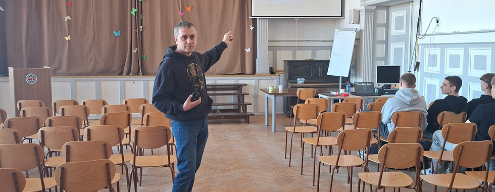 W dalszej kolejności pan Marcin Rutkowski zaprosił na aulę uczniów klas informatycznych, aby porozmawiać m.in. o kosmosie i omówić cele i zadania projektu „Inżynierowie przyszłości”, realizowanego w ZSZ. Spotkanie dotyczyło omówienia wykorzystania narzędzi informatycznych w realizacji projektu naukowego (badanie korelacji miedzy ciśnieniem atmosferycznym, temperaturą powietrza a wtórnym promieniowaniem kosmicznym). Projekt realizują pan Marcin Rutkowski oraz uczeń III TI Korneliusz Miszczak.