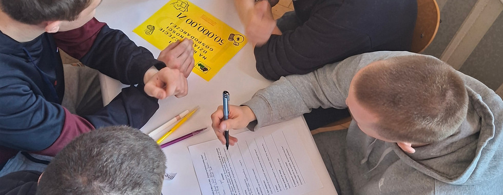 To nie koniec emocji i wydarzeń, bowiem o godzinie 12.00 rozpoczęły się na auli warsztaty przygotowane przez pracowników Powiatowego Urzędu Pracy w Lidzbarku Warmińskim. Uczestniczyli w nich uczniowie klas IV. Panie prowadzące: Żaneta Gąska, Anna Zawada- Żarska i Sylwia Welc zaprosiły młodzież do wspólnej, edukacyjno-przedsiębiorczej zabawy. Każda z grup otrzymała 50.000 zł i miała za zadanie stworzyć firmę w pół godziny i zaplanować jej rozwój. W grze symulacyjnej najlepiej zaprezentowała się grupa uczniów IV THP, którzy stworzyli projekt niecodziennej wypożyczalni rowerów i w nagrodę za swą przedsiębiorczość otrzymali od PUP upominki.
